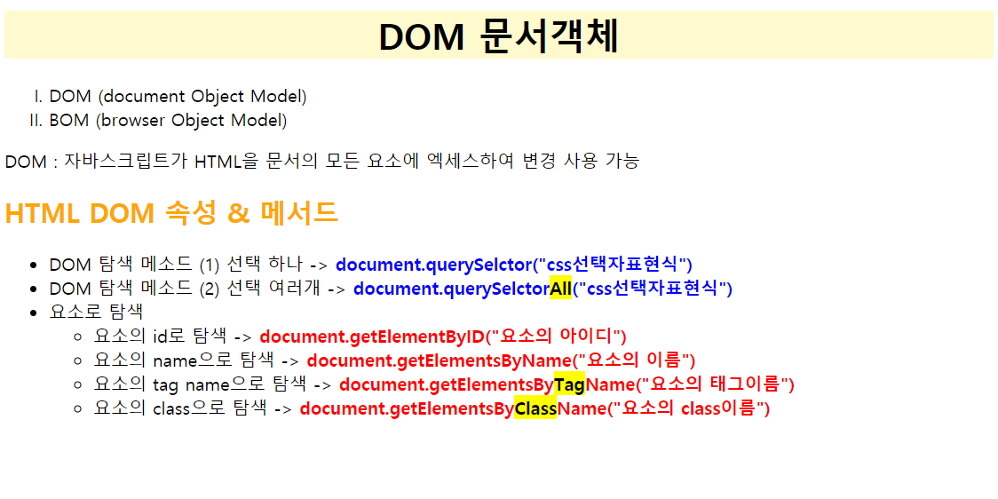 - Javascript의 dom에 대해 공부함