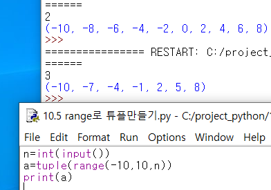 표준 입력으로 정수가 입력됩니다. range의 시작하는 숫자는 -10, 끝나는 숫자는 10이며 입력된 정수만큼 증가하는 숫자가 들어가도록 튜플을 만들고, 해당 튜플을 출력하는 프로그램을 만드세요