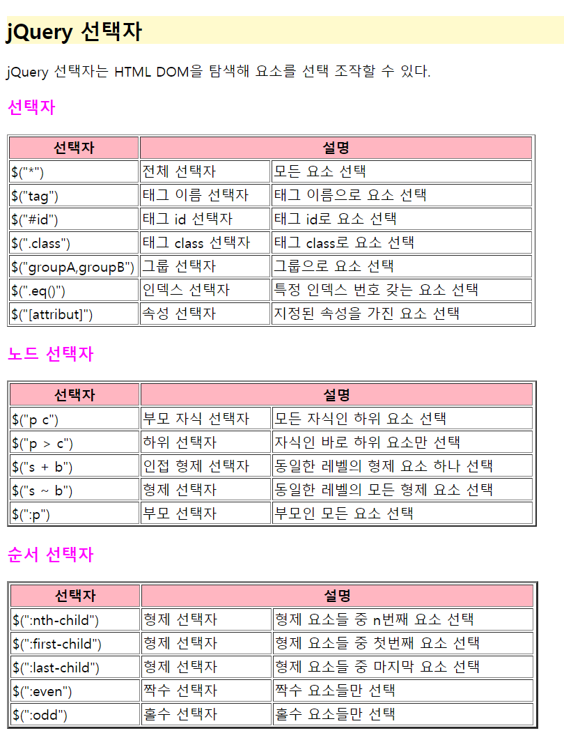 - jQuery의 선택자에 대해 공부함