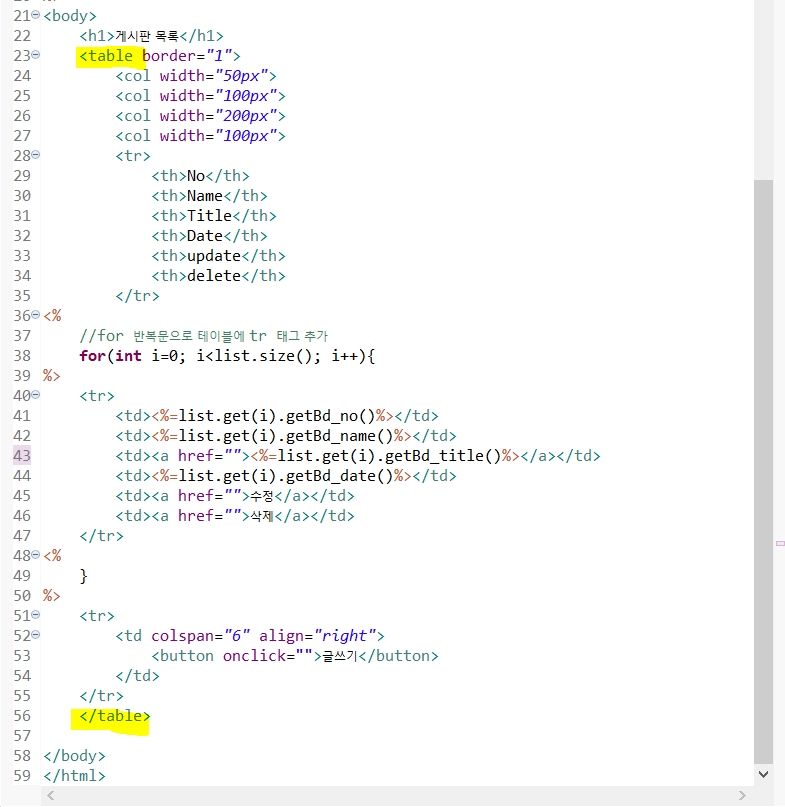 테이블 목록을 만들어주고 각 데이터는 get을 통해 dto에서 불러온다.