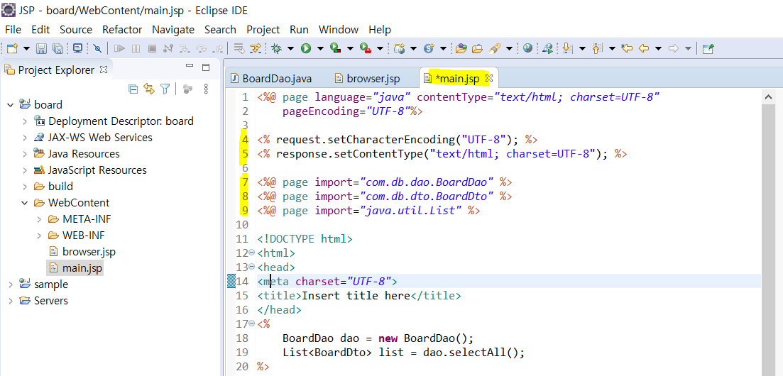 main.jsp에서 쓸 것들을 import 해준다.