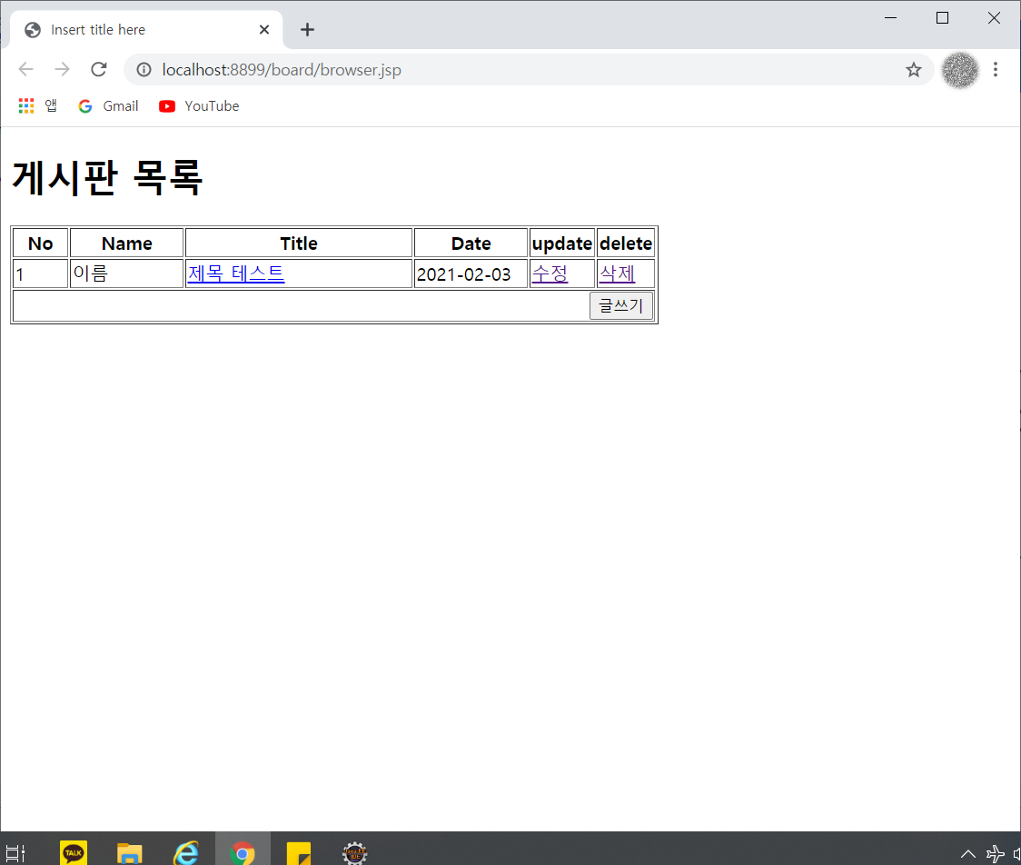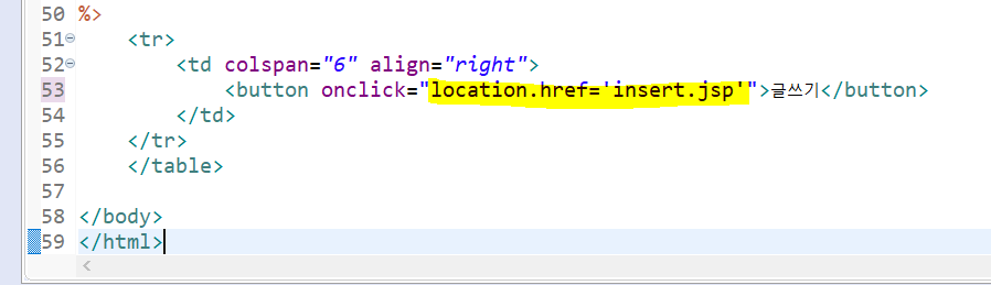 이번엔 글쓰기 기능을 넣어준다. main.jsp에서 글쓰기 버튼을 누르면 글을 쓸 수 있는 insert.jsp로 넘어가게 한다.