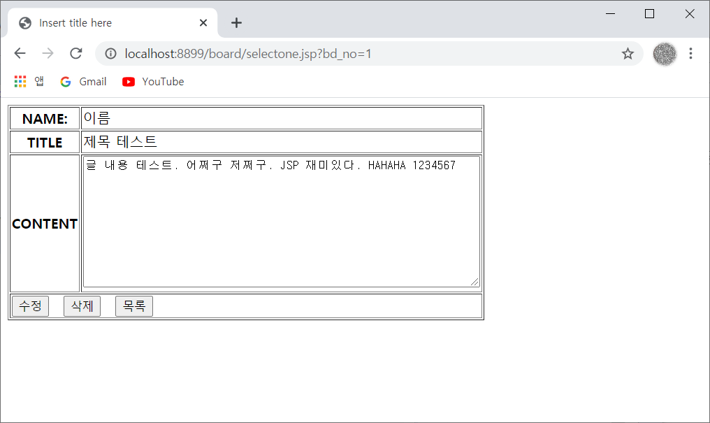 이렇게 제목을 누르면 게시글 하나가 보이고 다시 목록을 누르면 다시 돌아가도록 했다.
