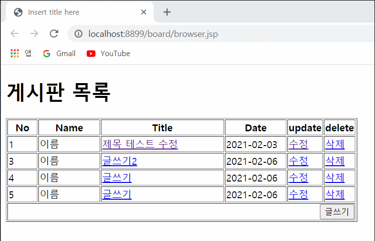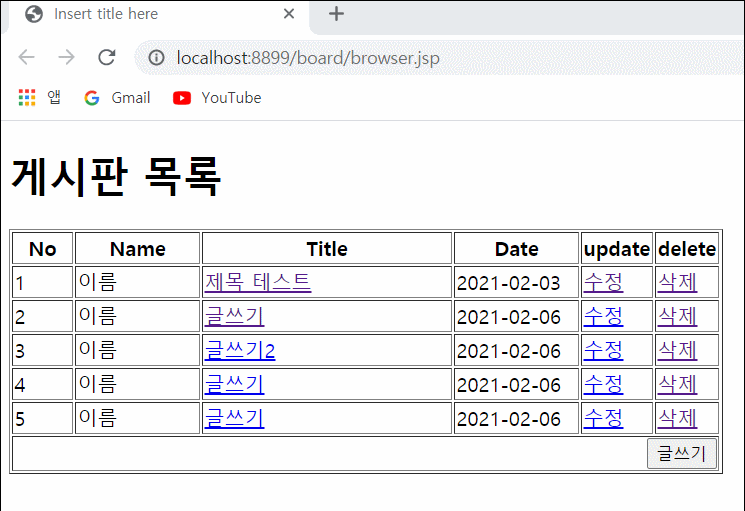 여기까지 구현이 되지만 수정이 완료되기 위해 동적인 기능이 들어있는 새 jsp를 만들어준다.