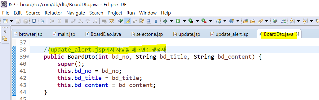 + BoardDto.java에서 매개변수 생성자를 만들어준다.