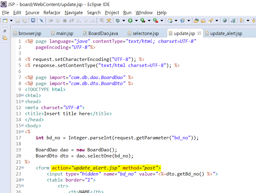 update.jsp에서 수정이 가능하게 하도록 update_alert.jsp와 연결해준다.
