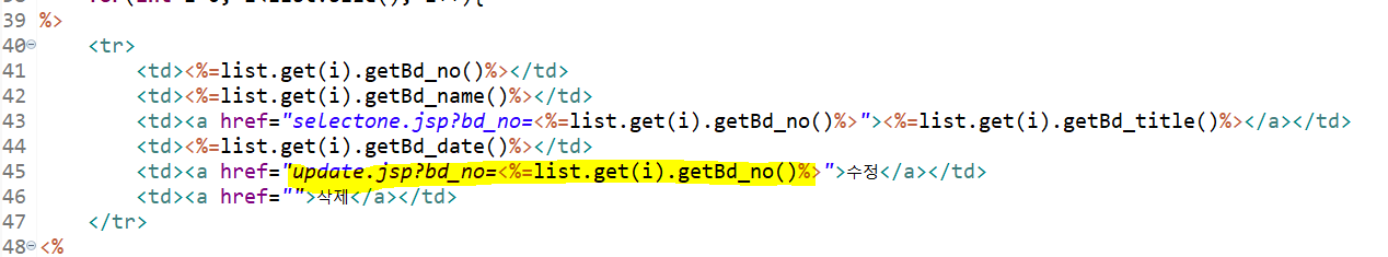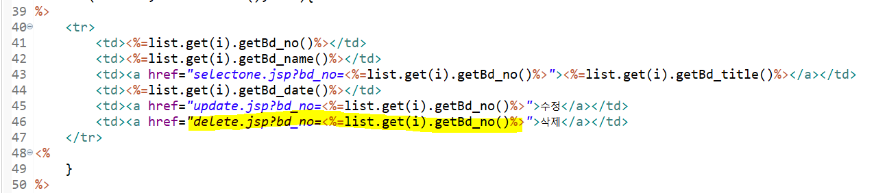 글 삭제를 해주기 위해 main.jsp 에 delete.jsp를 연결 해준다.