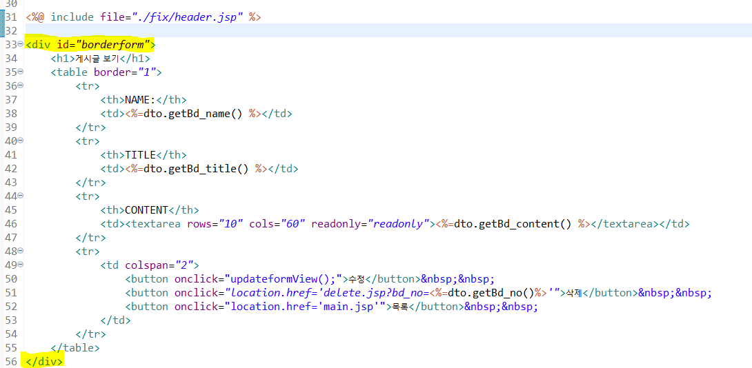 update.jsp에서 복사해와서 붙여넣어줬다. 이 화면은 <div>태그로 감싸주고 id를 부여해준다.