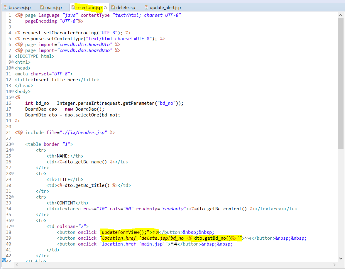 삭제버튼은 전에 만든 delete.jsp로 연결해 삭제해 주는 방식으로 하고