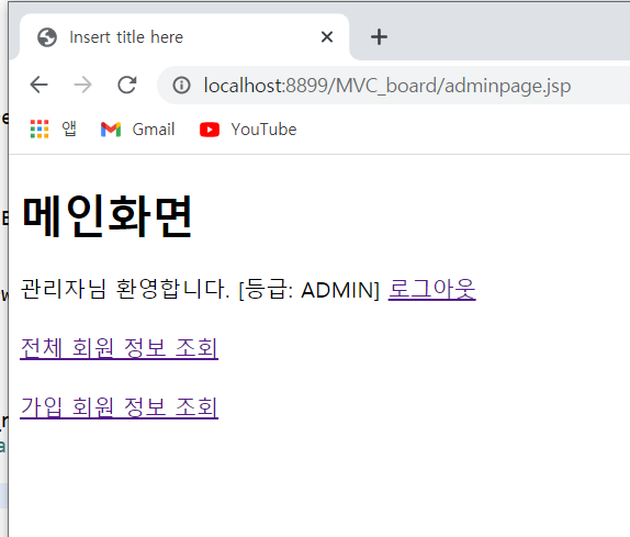 만약 로그인 성공시 관리자라면 관리자 페이지로, 유저라면 유저페이지로 넘긴다.