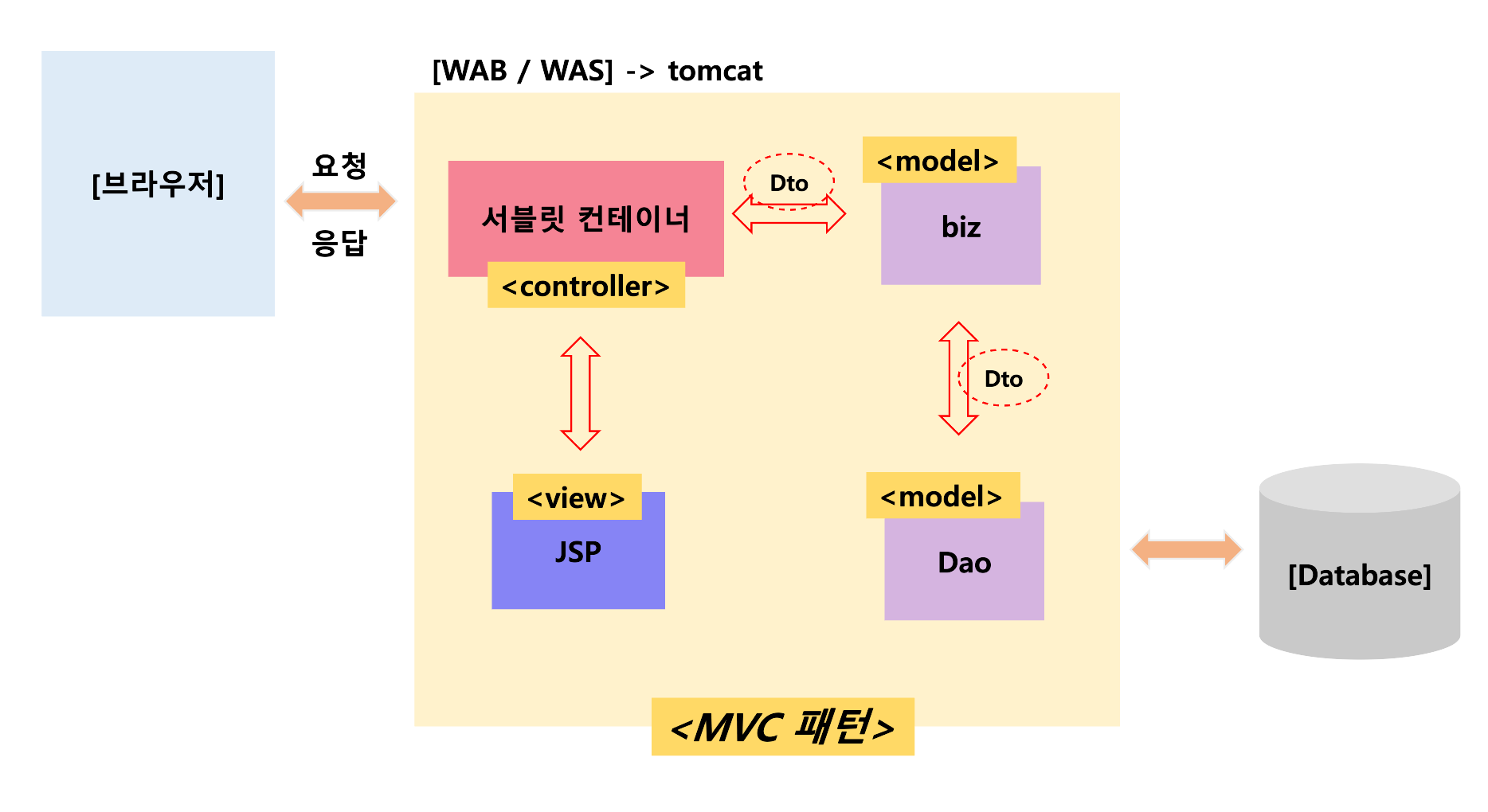 더 쉽게 말하자면 jsp에서 요청을 받아 클라이언트에게 요청 정보를 전달해 dao에서 메소드를 통해 요청을 처리해주는 것이다.