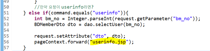 logincontroller.jsp로 가 userinfo 요청에 대한 처리를 적어준다.