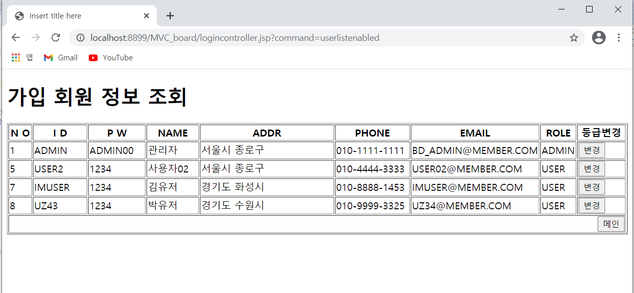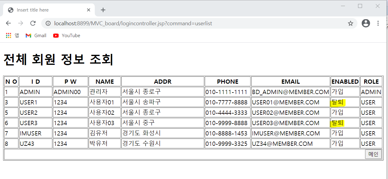 이렇게 전체 회원 정보가 조회됐다.