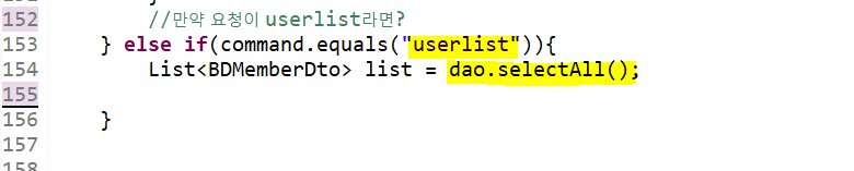 userlist 요청은 dao의 selectAll( )메소드로 처리해준다.