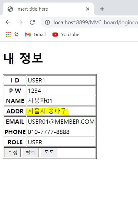 2021.03.02 - [IT 독학/WEB] - [JSP_MVC ⑥] 회원관리 프로그램 ( 회원정보 수정 / 웹개발 기초 / 웹개발 독학 / 백엔드 / 웹 프로그래밍)