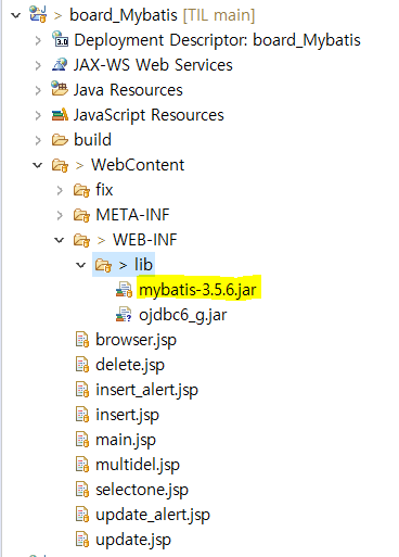 일단 JDBC를 쓰기위해 OJDBC를 다운받았던 것처럼 Mybatis도 파일을 다운받아 라이브러리에 넣어주면 된다.