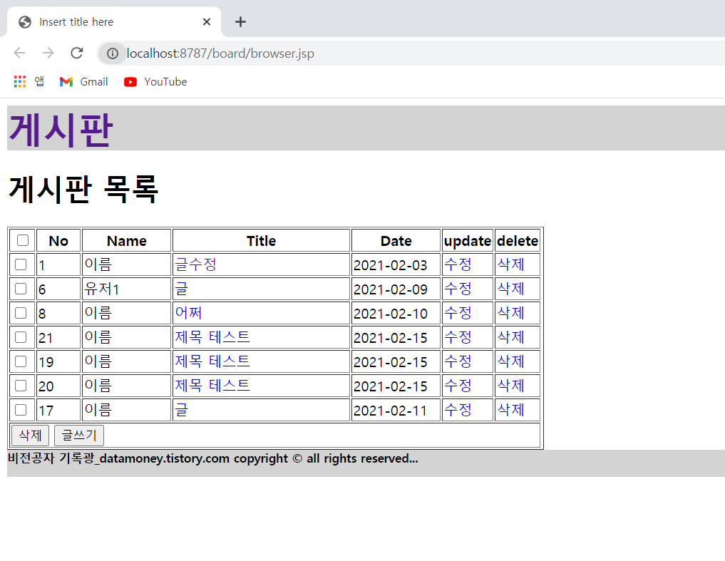 이렇게 insert문도 update문도 delete문도 적어서 처리하면된다.