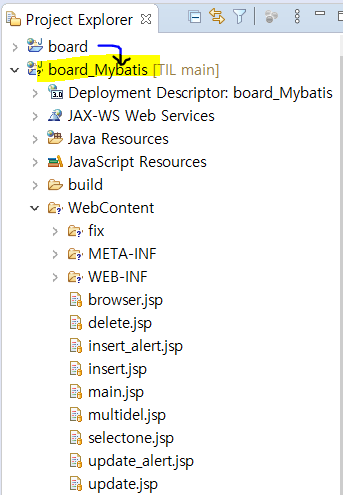 일단 기본 중의 기본이었던 JSP 실습 파일에서 JDBC을 지우고 Mybatis를 넣어 구현해보도록 한다.