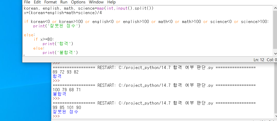 if korean<0 or korean>100 or english<0 or english>100 or math<0 or math>100 or science<0 or science>100:
