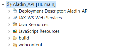 aladin_api라는 이름으로 다이나믹 웹 프로젝트를 만들어줬다.