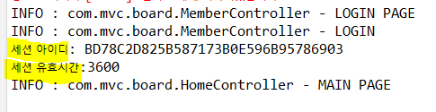 로그인을 실행하면 이렇게 콘솔창에 만든 세션의 아이디와 부여한 유효시간이 띄워진다.
