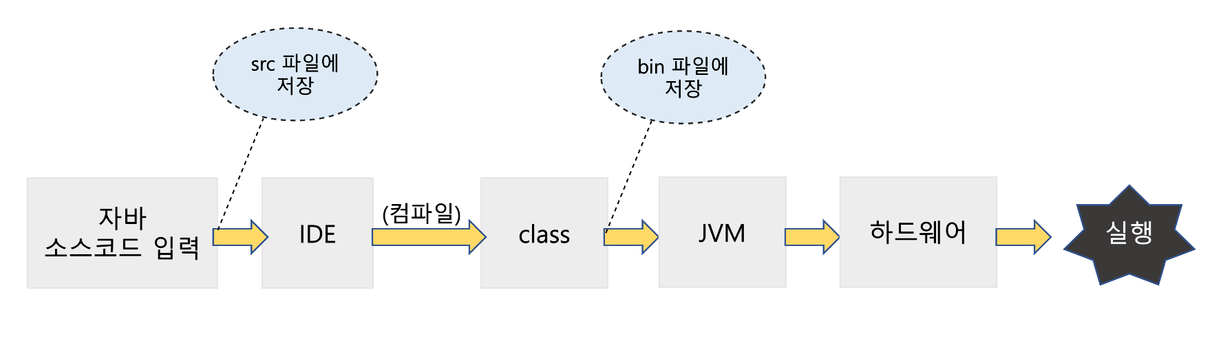 이클립스나 비주얼스튜디오와 같은 IDE을 걸쳐 컴파일이 된 클래스가 bin (binary) 파일에 저장된다.