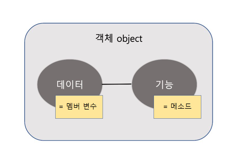 여기서 속성(attribute)는 객체가 가진 고유한 특성이고 기능(function)은 객체의 행동 패턴을 말한다.
