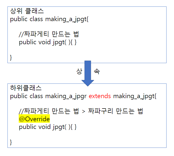 상위 클래스에서 짜파게티 만드는 메소드를 하위클래스에서 상속받아