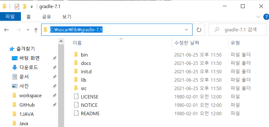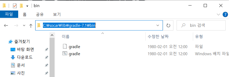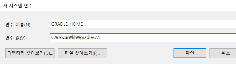 Path 더블클릭 (편집) > 새로 만들기 > 경로 추가 'C:\socar\lib\gradle-7.1\bin'
