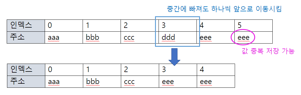 - LinkedList : 앞뒤로 인접하는 인덱스를 연결해 체인처럼 관리하는 리스트이다.