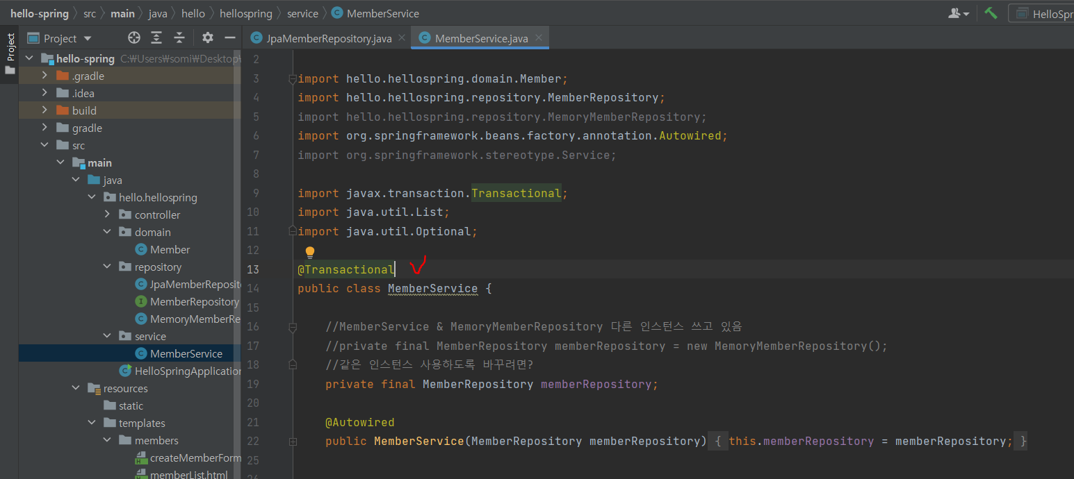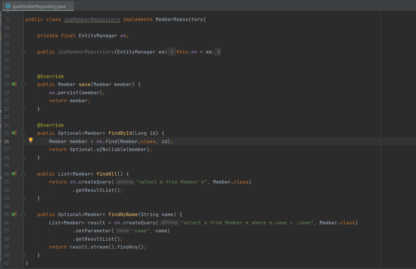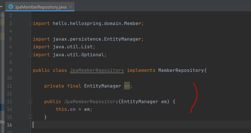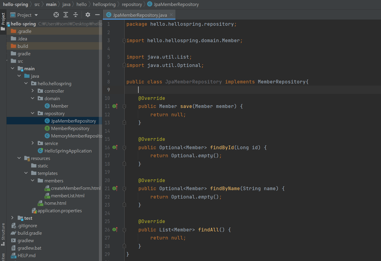 JpaMemberRepository를 만들어 MemberRepository를 상속받아 준다.