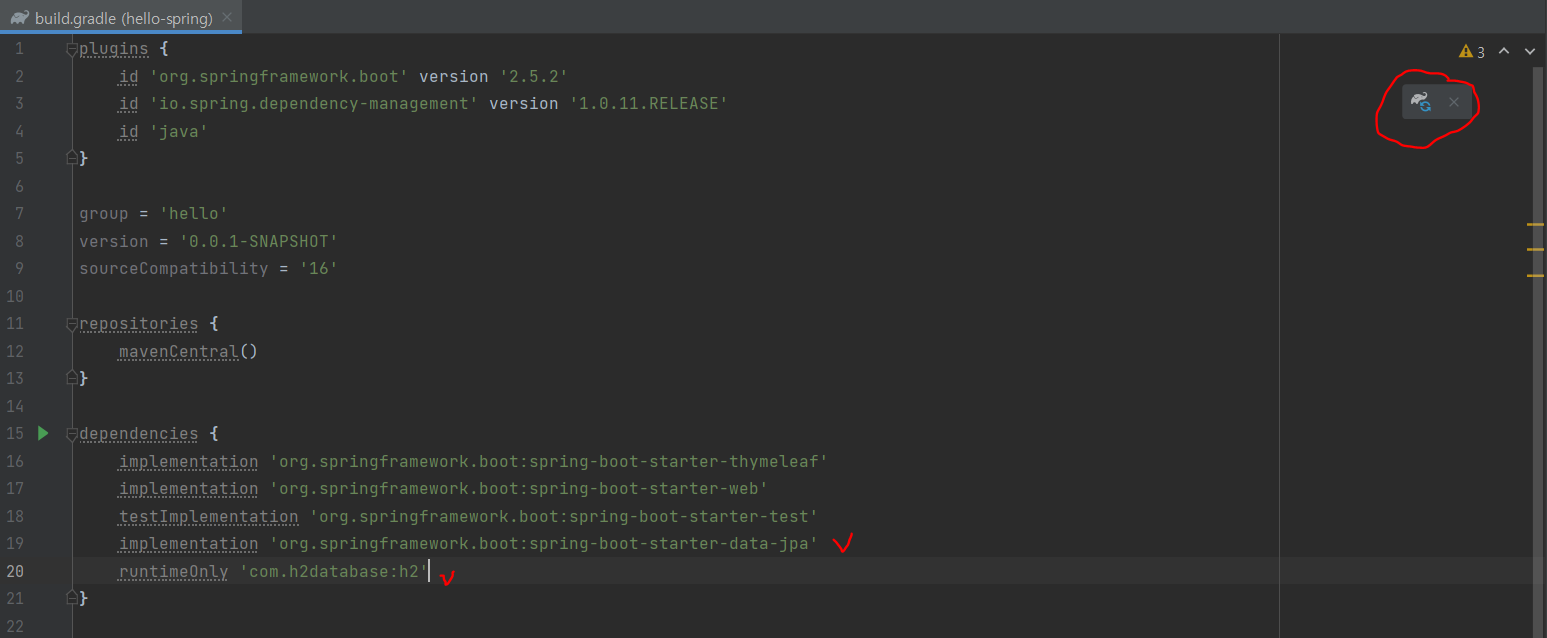 둘을 추가해주고 gradle refresh를 해준다.