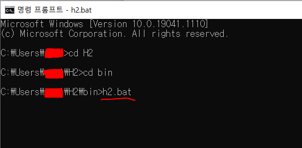 압축을 풀고 파일 위치로 접근해 h2.bat을 실행해준다.