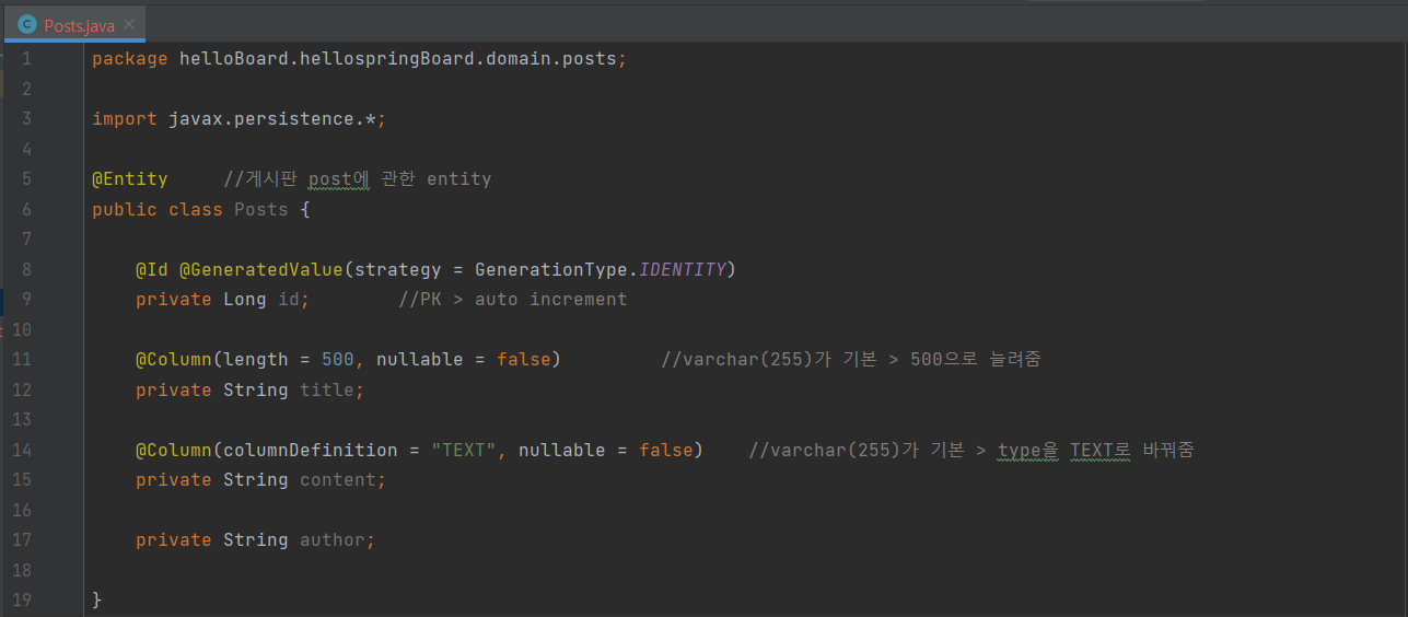 3-1. Posts.java 클래스 생성