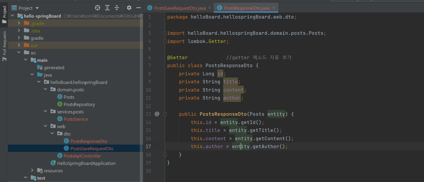 4-2. PostsResponseDto.java