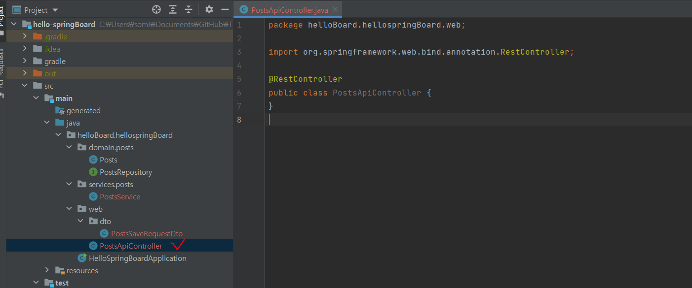 web 패키지 생성 > PostsApiController.java 생성