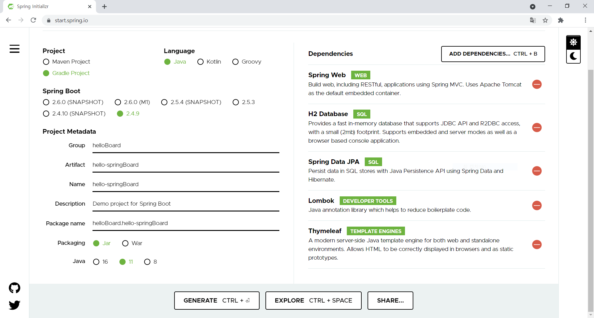 이번에는 스프링 부트 + 스프링데이터 JPA 로 기본 crud 게시판 실습을 진행해보려 한다.