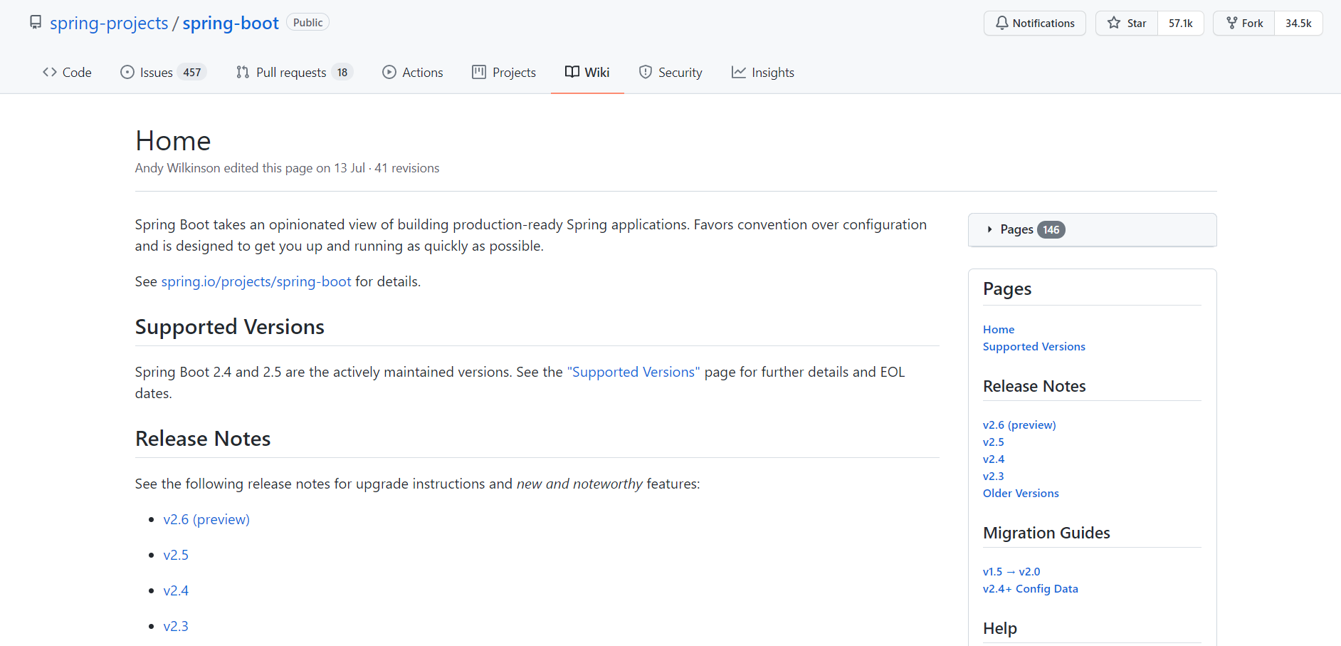 하지만 Spring boot의 wiki에서는 사용설명보다는 출시 노트 등을 적어뒀다.