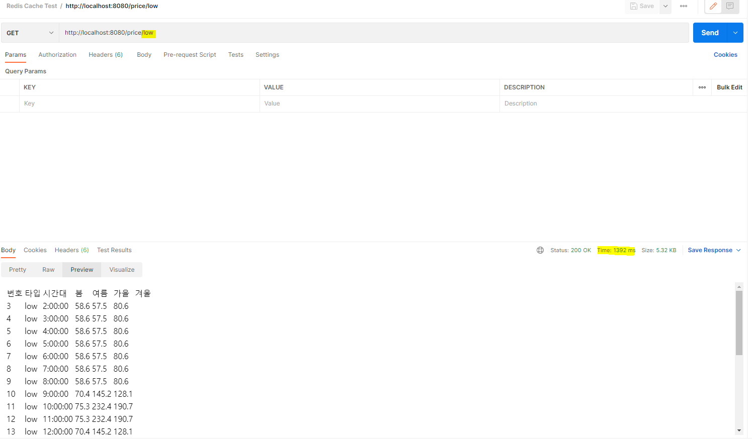 충전 타입이 low인 충전요금을 불러왔다. 1392 ms가 걸렸다.
