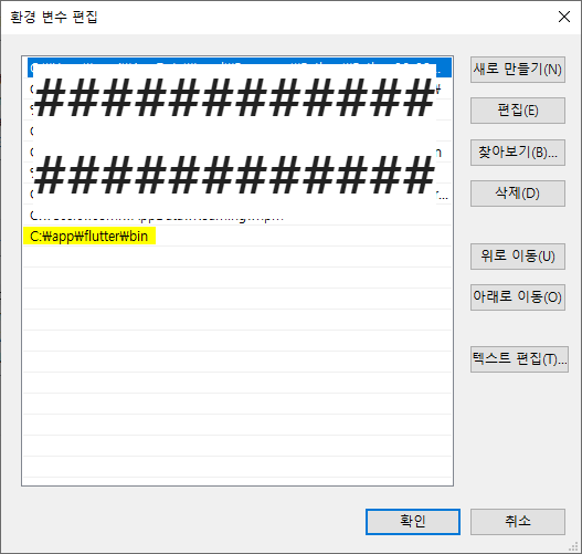 C:\app\flutter\bin 주소를 환경변수에 넣어준다.