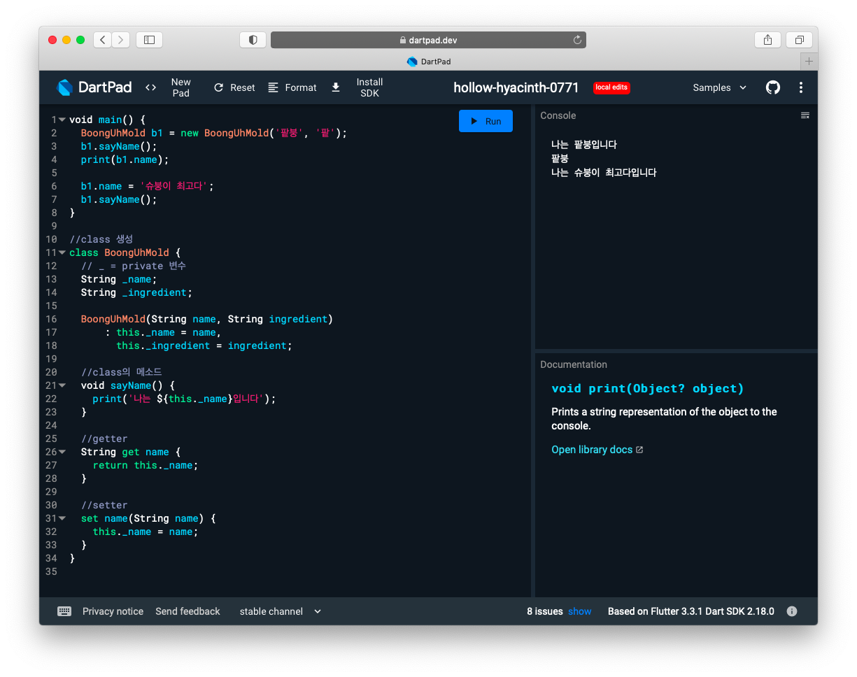 이번에는 dart만의 객체 지향 문법에 대해 정리해보겠다.