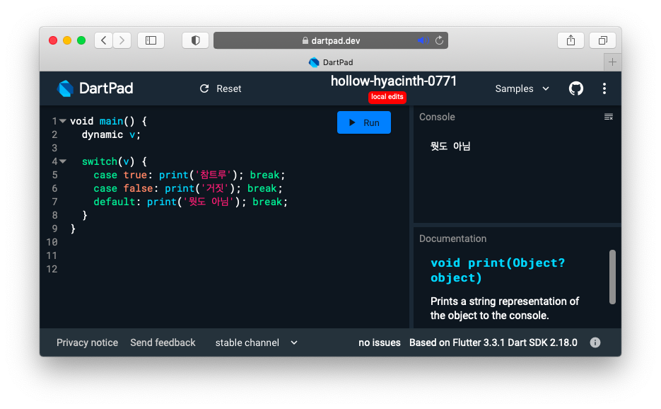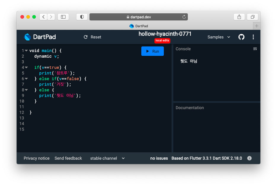 | [Flutter] Dart 문법 2 (상속/ 인터페이스/ Cascade Operator) (0) | 2022.09.08 |
