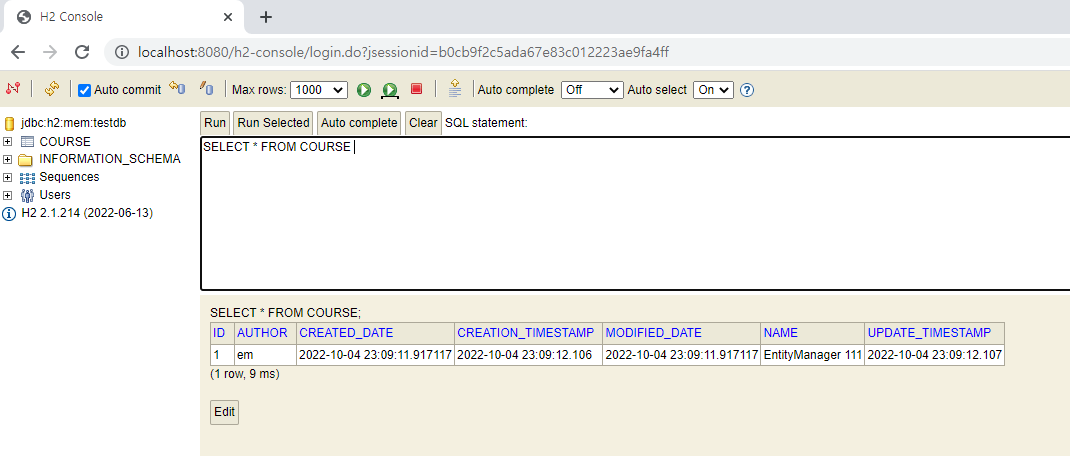 서버를 시작하고 h2를 보면 엔티티 생성이 잘 되어