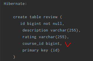 정리하자면 1 : 多 관계에서 1인 Course는 그대로 생성되고 多인 Review에는 FK로 course_id가 생성된다.