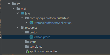resources 밑에 proto 디렉토리를 새로 만들고 그 안에 Person.proto 파일을 만들어줬다.