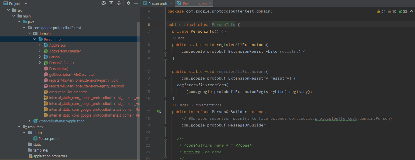 maven install 만 해줘도 PersonInfo 파일이 똑같이 생성된다.