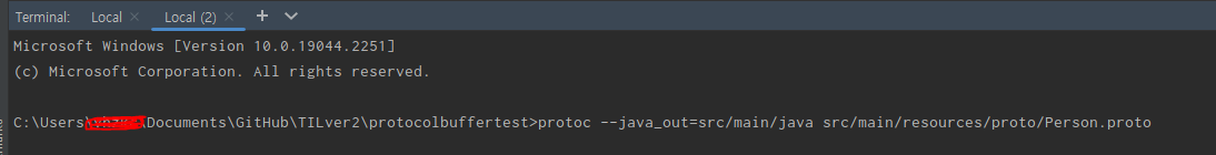 cmd창에서 protoc --version 로 잘 다운 받아졌는지 확인할 수 있다.