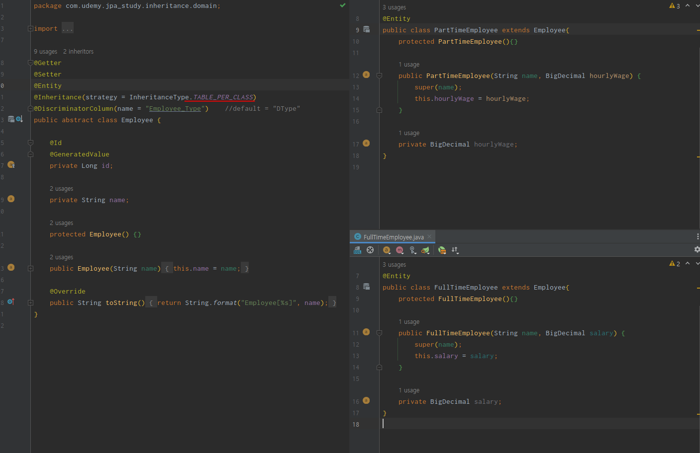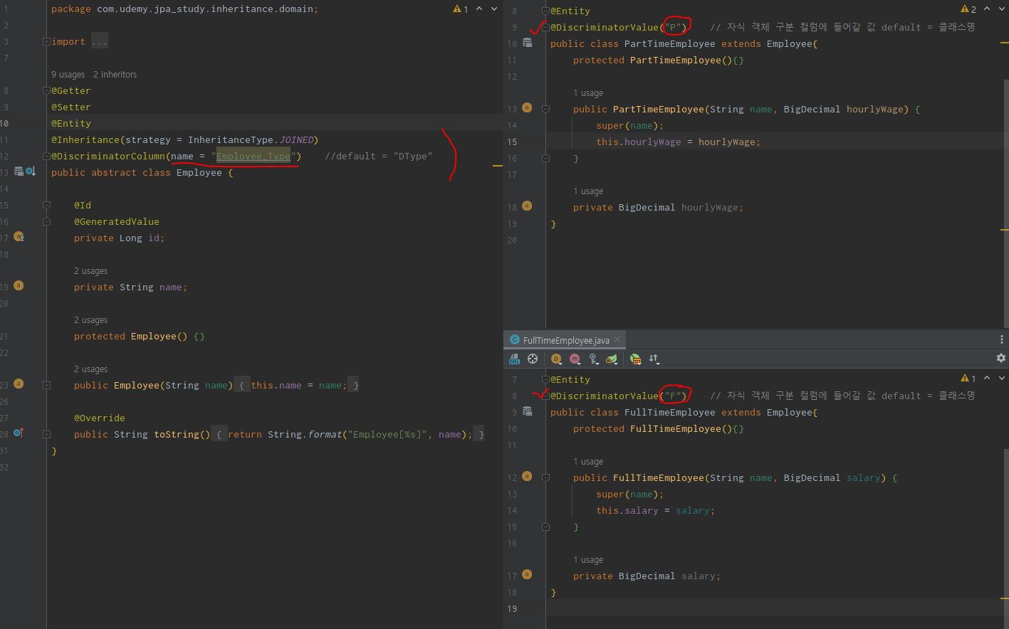 자식 객체는 FullTimeEmployee와 PartTimeEmployee로 구성한다.