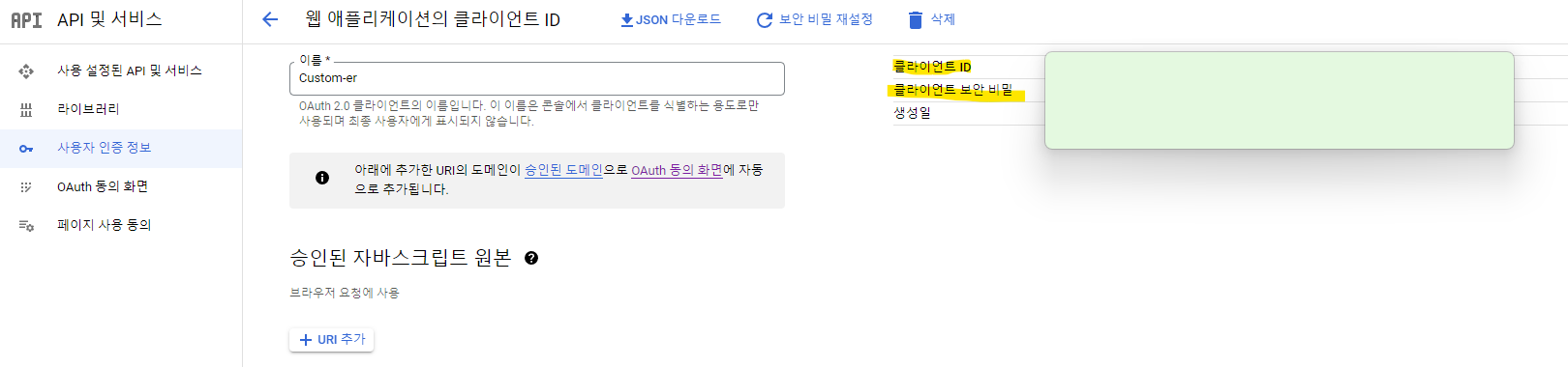 내 애플리케이션에서 client-id와 client secret을 복사해둔다.