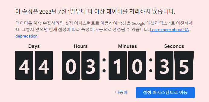 기존에 GA는 UA (Universal Analytics)라는 이름으로 서비스되었다. GA4가 출시되며 UA도 서비스를 계속 제공했지만 곧 2023년 7월 1일부터는 UA의 서비스가 종료된다고 하며 GA4로 전환을 계속해서 요구하고 있다.